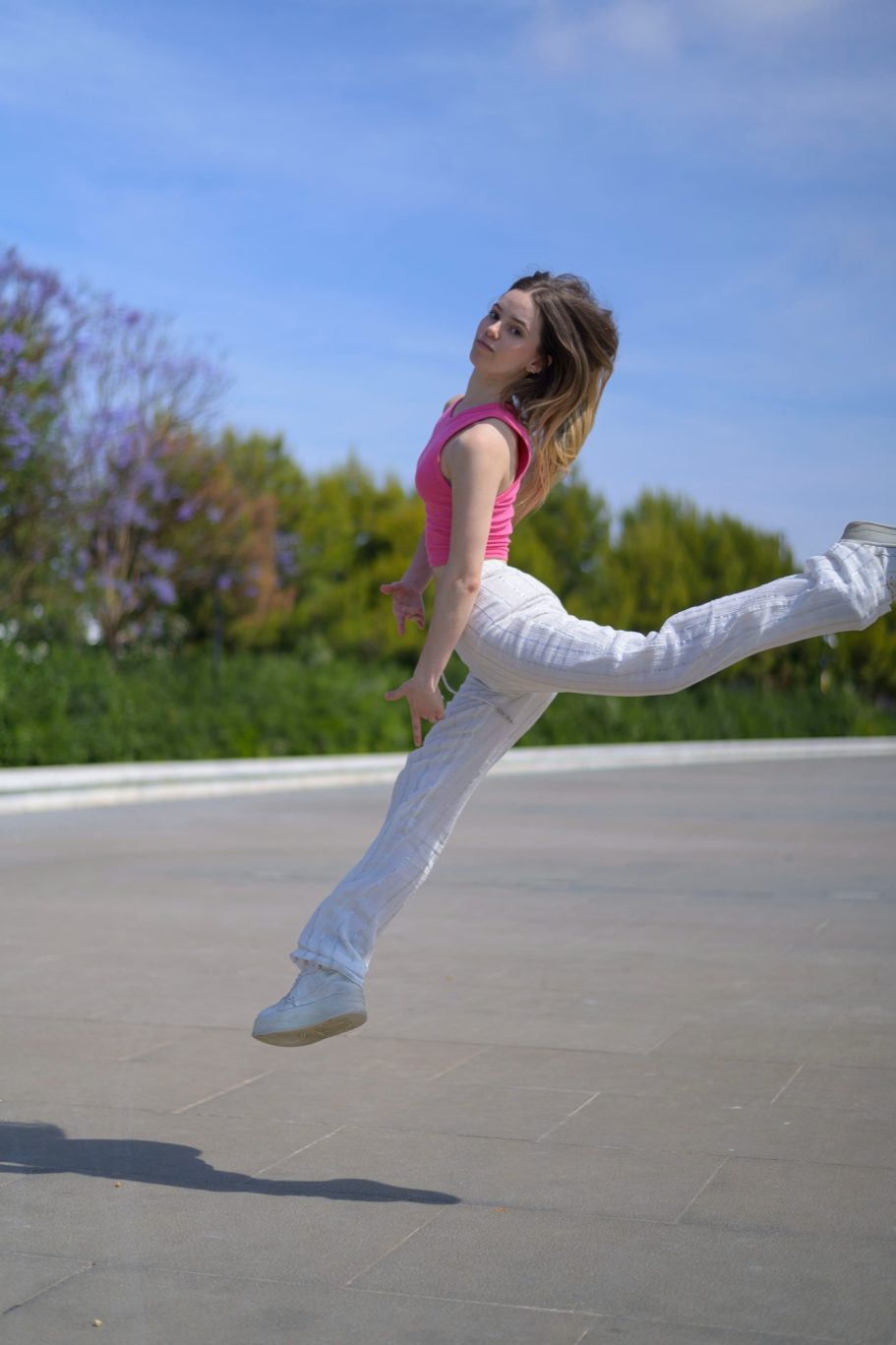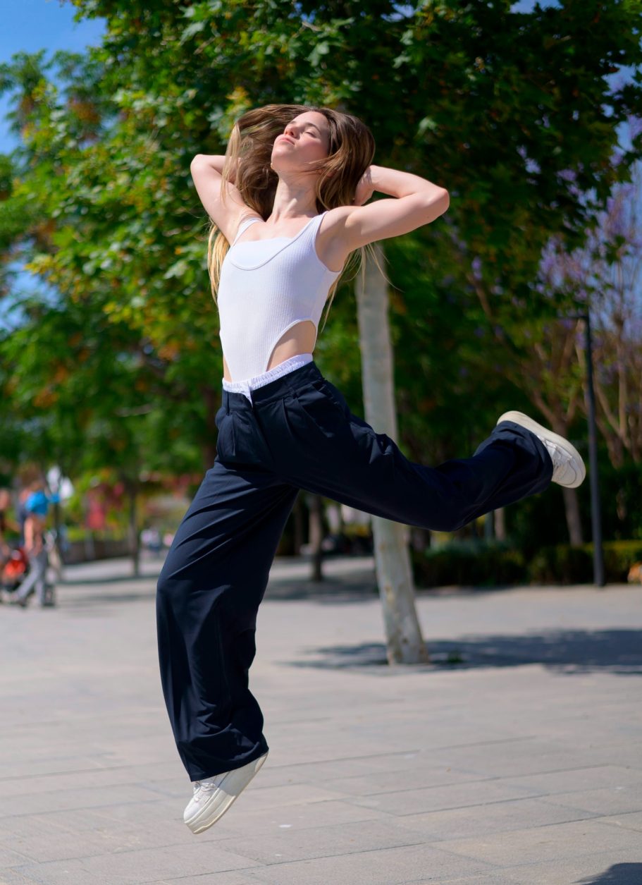 Desde las tablas hasta el aire, Jana se sumerge en la magia del teatro mientras se aventura en la práctica de telas aéreas y gimnasia acrobática, llevando la expresión a nuevos y emocionantes niveles.
